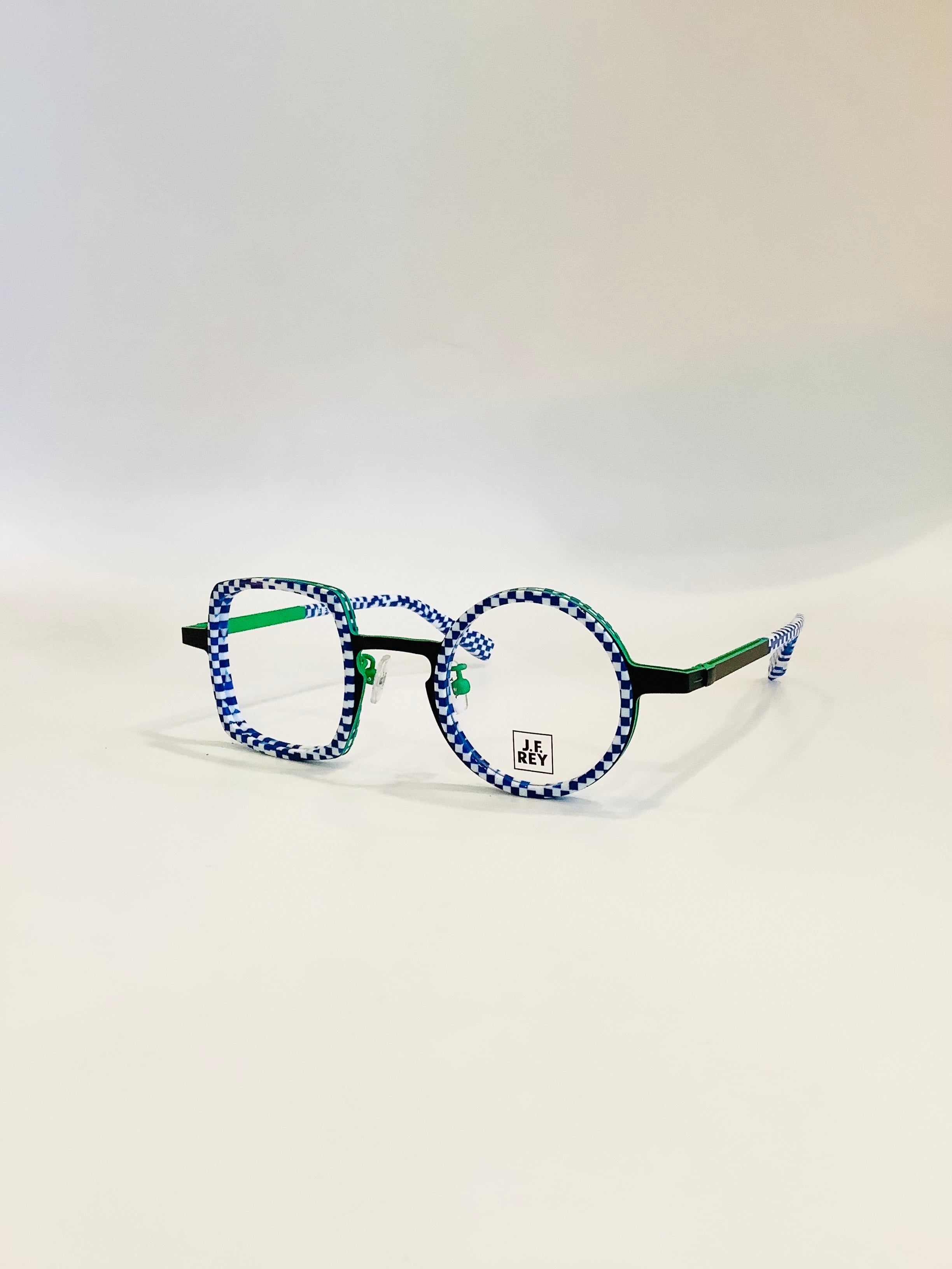 洗練されたデザインと独自の発想が融合したJ.F.REY JF3062。四角と丸のユニークな形状を取り入れたこのモデルは、トリッキーな魅力を放ち、ファッションのアクセントとしても楽しめる一品です。