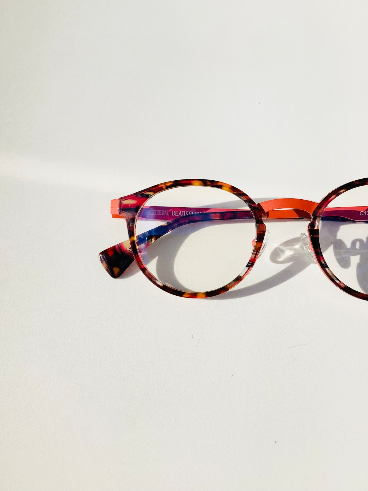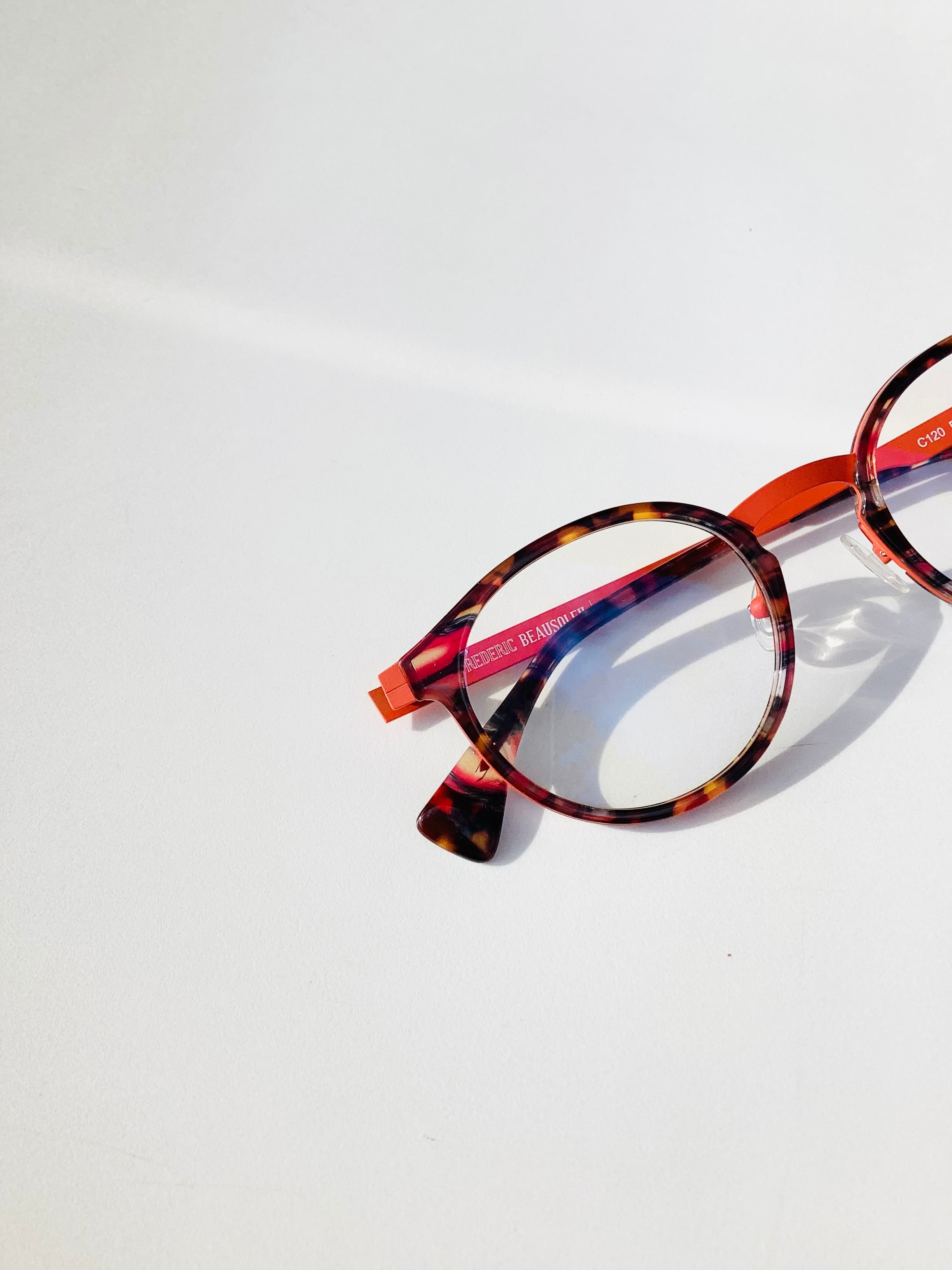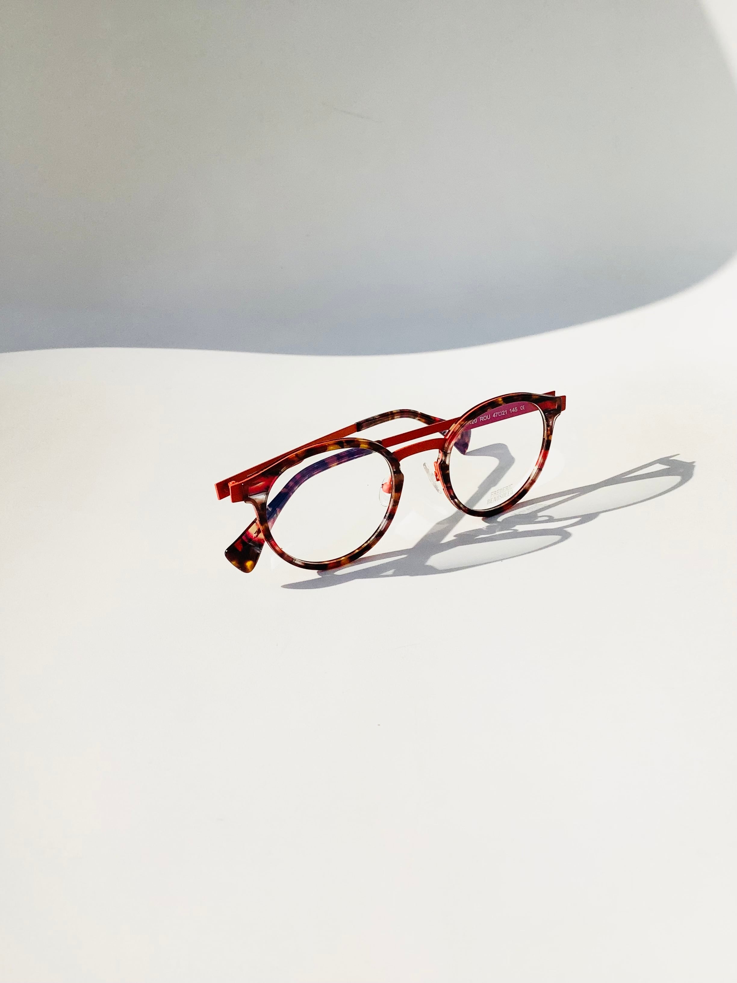 洗練されたデザインと鮮やかな色使いが魅力の、FREDERIC BEAUSOLEIL C120。フレデリック・ボーソレイユが手掛けたこのモデルは、「色の魔術師」との異名を持つデザイナーならではの独特なカラーリングが光ります。また、ボストン型が柔らかく、見る人を惹きつける素敵な印象を与えます。ファッションのアクセントに最適な1本です!